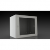Шафа настінна X-IQ 15U 400 мм, 19", навантаження до 45 кг, дві пари 19" напрямних, бічні стінки знімні. Передні двері оглядові із замком, загартоване скло 4.0 мм. Зварний корпус, клас захисту IP20, IK08. Колір RAL 7035.